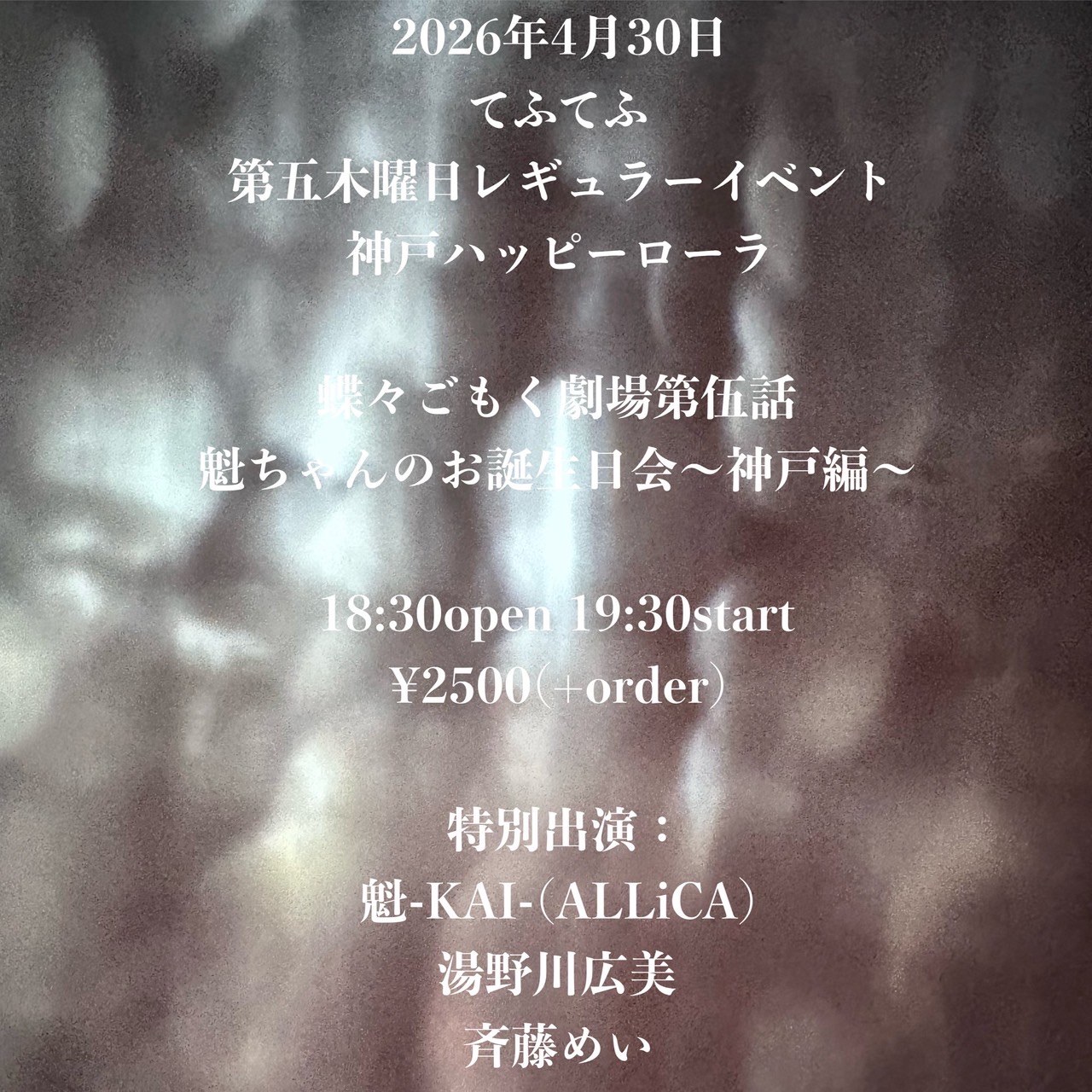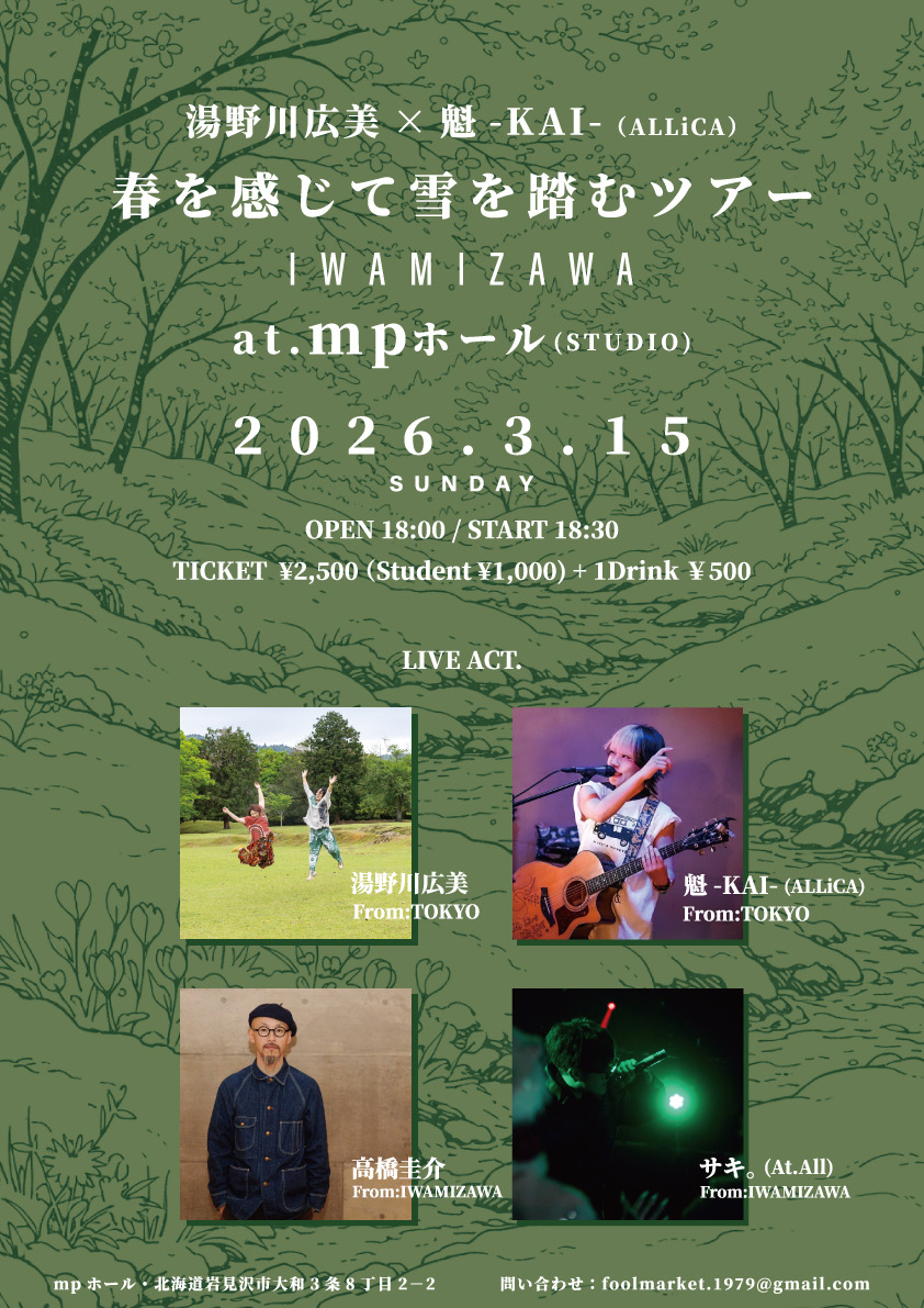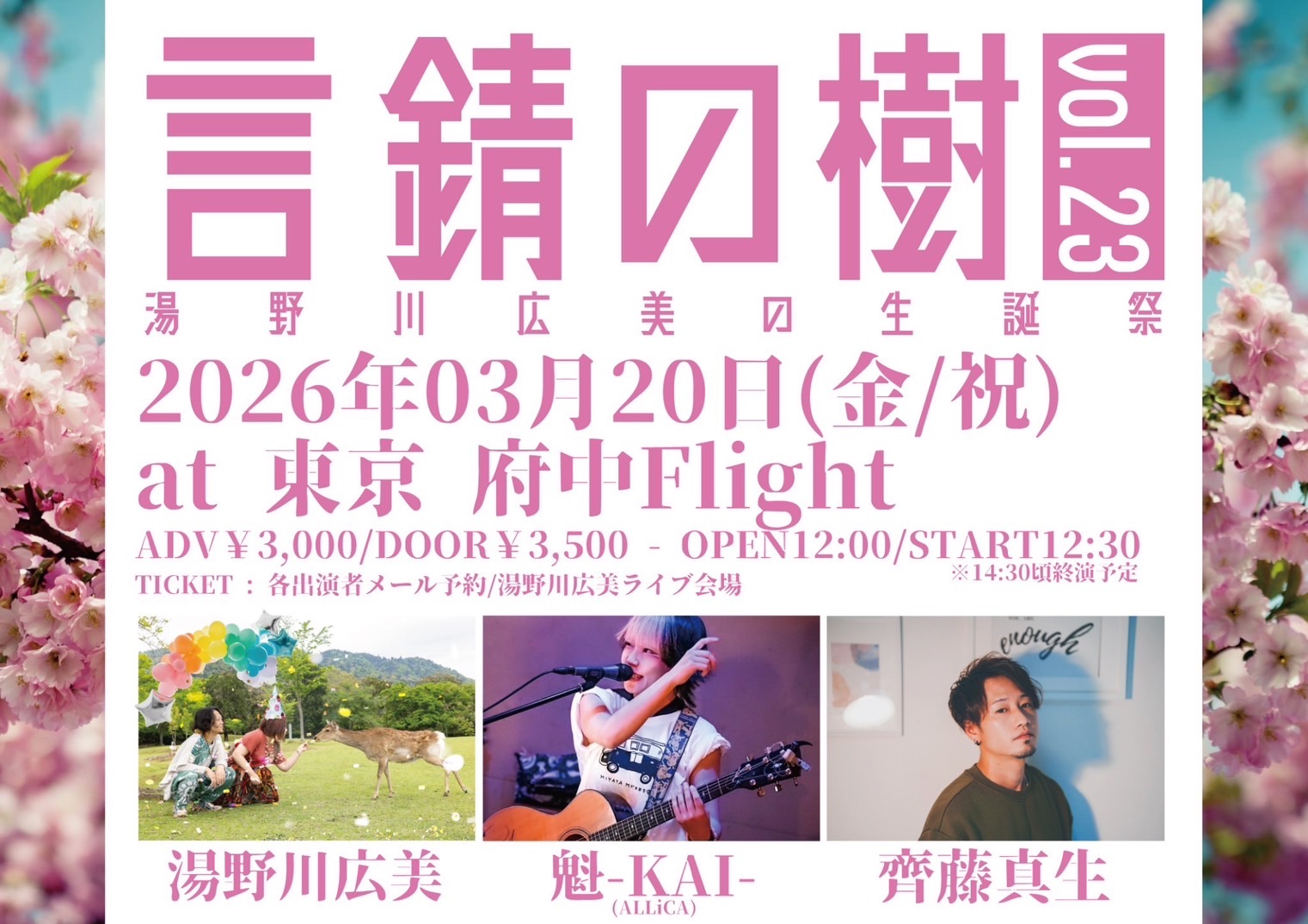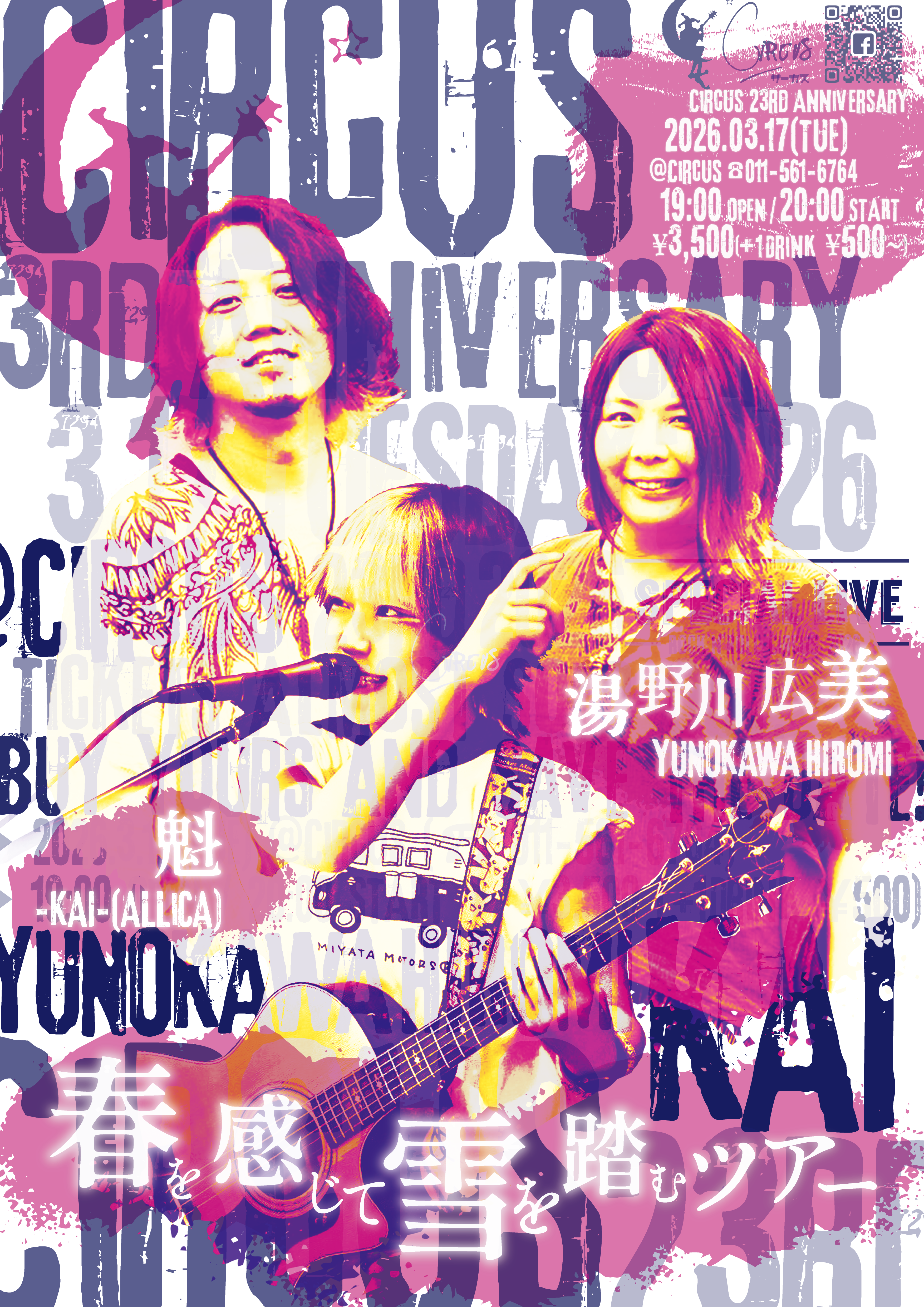 前売:¥3,000 当日¥3,500(+1D¥700)